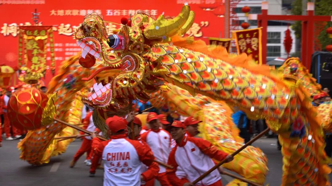 “我的村晚我的年·红红火火过大年”龙狮巡游