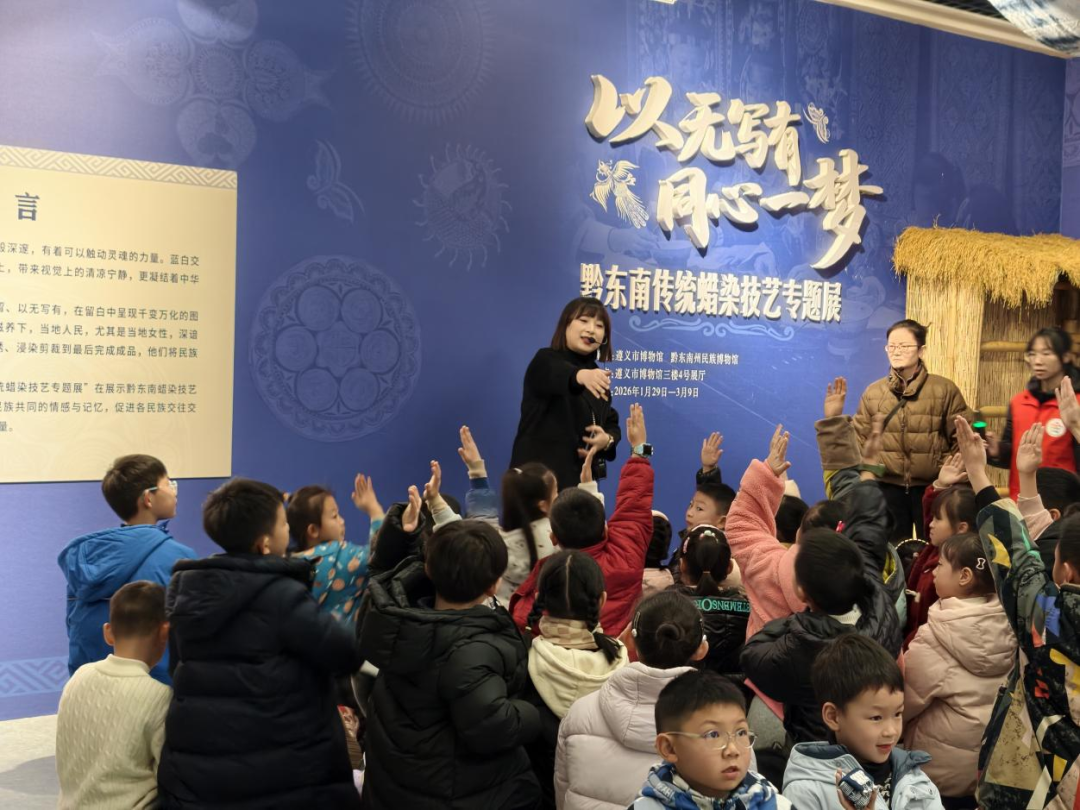“以前只觉得蜡染图案很美,今天听了讲解才知道,一个简单的窝妥纹里还有这么多含义,非常让人震撼。”来自遵义本地的王女士在参观后感慨道。带着孩子前来的吴先生也表示:“孩子在活动上拿到蜡染小礼物特别开心。这种亲身接触的体验,比书本上的知识更加生动。”